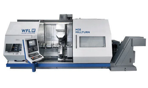 The multifunctional turning-boring-milling centers M30/M35 and M30-G/M35-G allow complete machining of complex shafts and chuck parts with a swing of up to 520mm and machining lengths of up to 2000mm. It can thus function as a lathe, a 5-axes machining centre and if needed as a gear-cutting or deep-hole drilling machine.