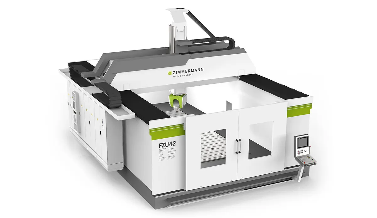 The FZU42 CNC portal milling machine is suitable for simultaneous 5-axis machining of a wide range of materials such as aluminum, steel and titanium. It does not require a fixed machine foundation and can be flexibly installed on solid industrial floors. Its reinforced base plate, which can withstand a maximum weight of up to 15 tons, and the eight support elements reduce vibrations during the milling process - the basic prerequisite for maximum accuracy and optimum surface quality of the workpieces.