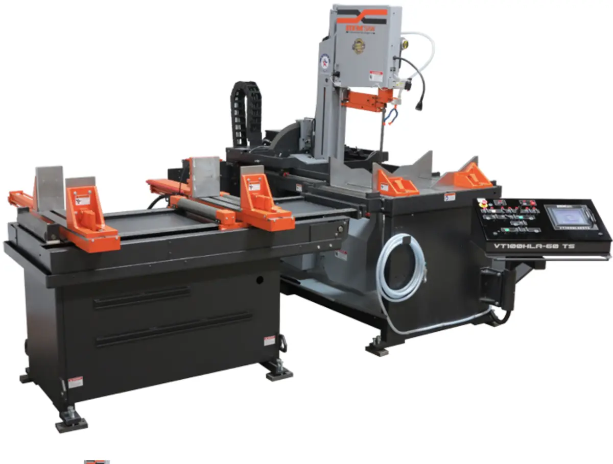 The VT100HLA-60-CTS is a fully automatic and programmable saw that will miter up to 60ᵒ in both directions Manual, Semi-Automatic, and Fully Automatic modes will save jobs for future using a touch screen control and the bar-feed indexes 48” per stroke with multiple indexes possible.