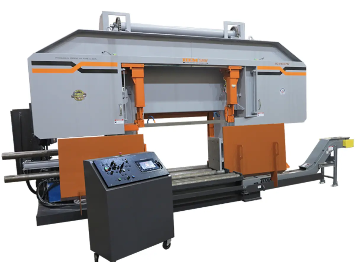 The DC4045 is operated using a touch screen control in a pedestal mounted console and can be operated in manual or semi-automatic modes. Full stroking variable-pressure vise and powered guide arm are standard along with other features. Active Cut Watcher® is standard and options are available