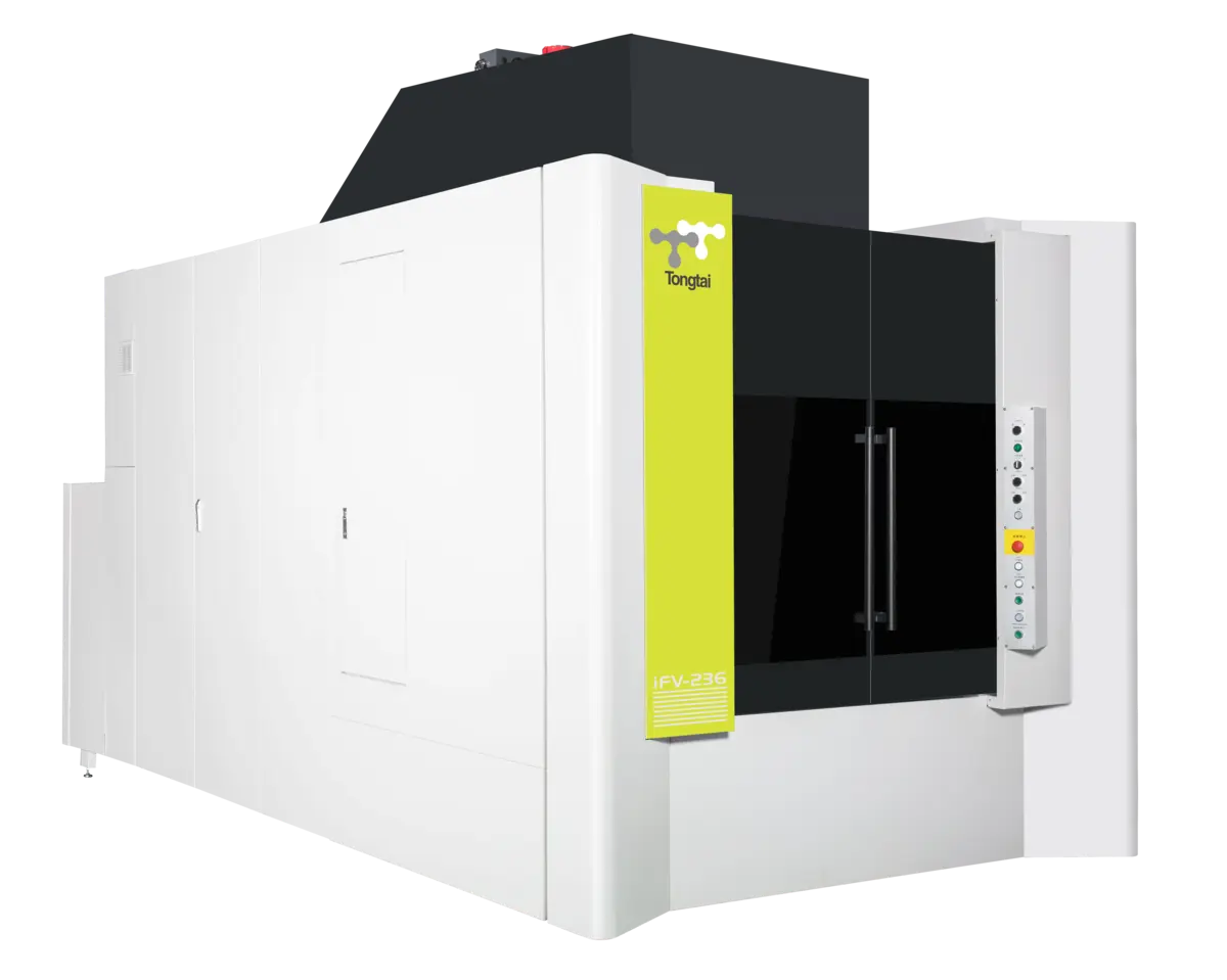 The Tongtai FV Series of single- and twin-spindle vertical machining centers is designed for mass production of complicated workpieces in the automotive, appliance, electronics, and energy industries. Fixed twin-spindle versions can process two individual machining tasks simultaneously, and the addition of a 5-axis trunnion table effectively creates a horizontal machining center. Machines spindles are 12,000 rpm with 40-taper toolholding systems.