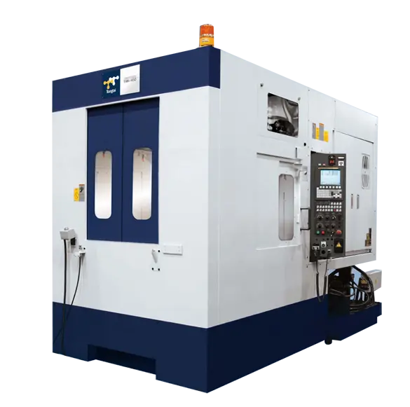 The Tongtai TMH Series of high performance horizontal machining centers without pallet changers consists of TMH-400 and TMH 500 machines. The X-Y-Z axis travels of the TMH-400 are 20″ x 20″ x 20″ (500 mm x 500 mm x 500 mm) and are X” x X” x X” (X mm x X mm x X mm) for the TMH-500. Pallet sizes are 16″ x 16″ (400 mm x 400 mm) for the TMH-400 and 20″ x 20″ (500 mm x 500 mm) for the TMH-500. The compact #40- or #50-taper machines are engineered for use in production lines or stand-alone situations. The machines feature rigid cast iron frames for maximum rigidity and stability. The TMH-400 has a 15hp, 10,000 rpm spindle, while the TMH-500 spindle produces 20hp.
