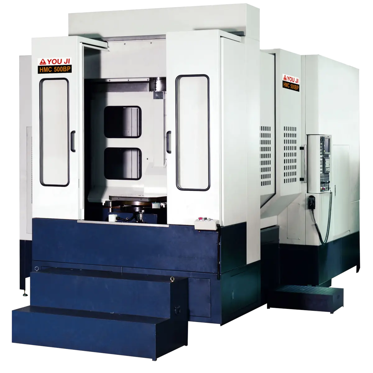 The You Ji HMC series of horizontal boring and machining centers is comprised of sixteen machines covering a wide selection of sizes and capabilities. Travels of X-Y-Z axes start at 51″ x 40″ x 47″ (1,295 mm x 1,016 mm x 1,194 mm) and on the largest machine are 134″ x 71″ x 79″ (3,404 mm x 1,803 mm x 2,006mm). Pallet sizes begin at 20″ x 20″ (508 mm x 508 mm) and the largest are 102″ x 87″ (2,590 mm x 2,209 mm). W-axis travels run from 23.6″ (600 mm) to 27.5″ (698 mm) on machines that offer that feature.