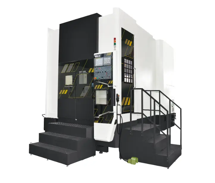 The You Ji VMT-1000+Y Vertical Mill / Turn Center is a compact, high precision, heavy duty machine. It combines a 3 axis 5 face machining center with vertical turning. The rigid vertical column and base are meehanite castings, heavily ribbed for reduced thermal distortion and vibration dampening. It is designed for turning and 5 sided or 4+1 axis milling of medium size workpieces, producing complete parts in a single set-up.