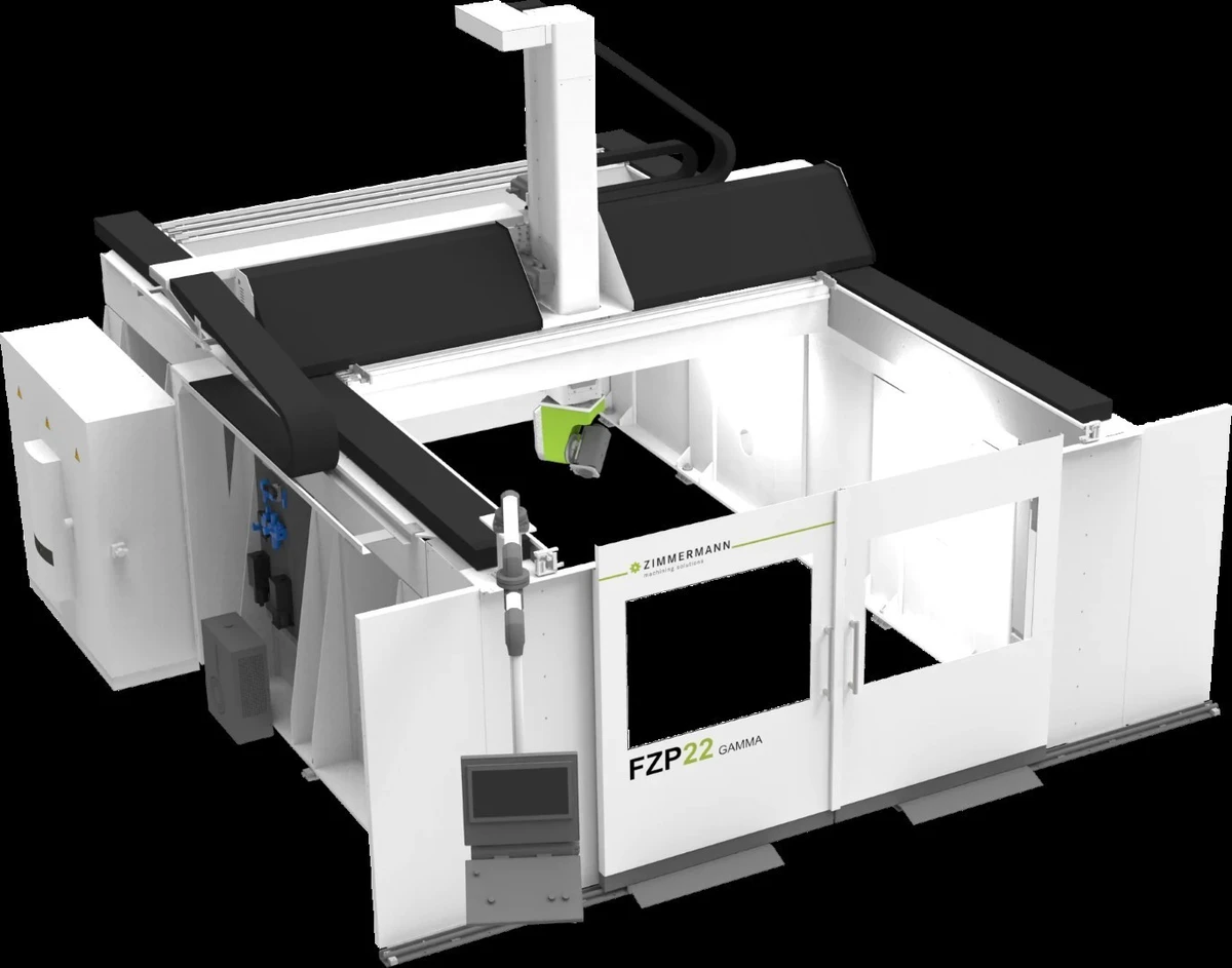 The machine version that agrees all the advantages of the FZU22, for large-volume components. Aluminum, plastics and wood are their métier, as is the finishing of CFRP parts (carbon fiber and composites). The top-moving gantry also ensures high precision in the production of models and molded parts. The standard version includes the tool changer for 12 tools and a control of the latest generation (Siemens or Heidenhain). The specially developed 5-axis milling head with 15 kW spindle is also suitable for machining hard-to-reach workpiece locations due to its geometry. Customer requirements can be met individually with regard to the design of the machine table.