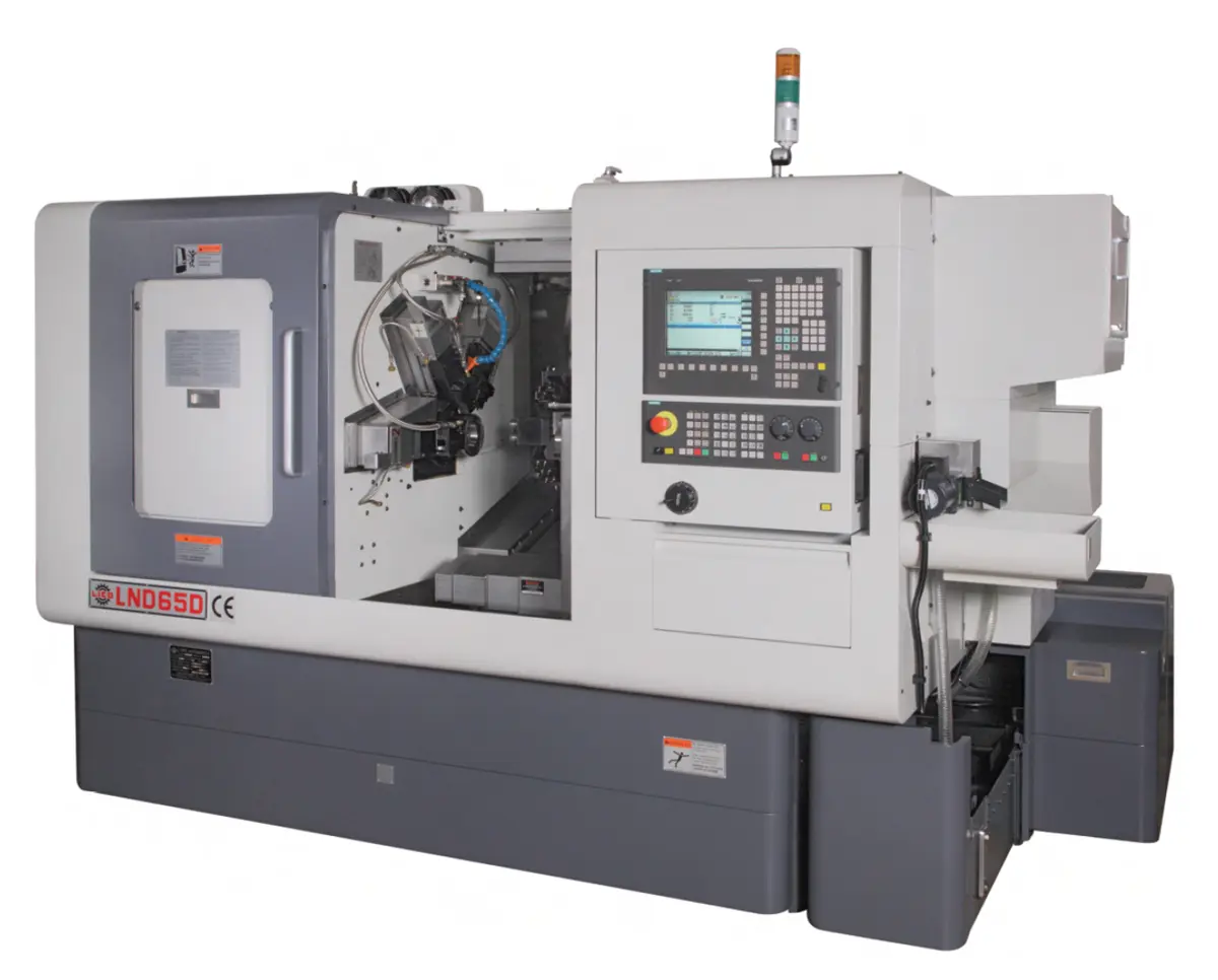 The LICO LNDD series are extremely productive twin spindle multi-slide mill/turn centers. LNDD machines feature overlapping slides for maximized productivity and excellent size control. These machines are offered in 4 spindle sizes: 51mm, 65mm, 80mm, and 100mm.