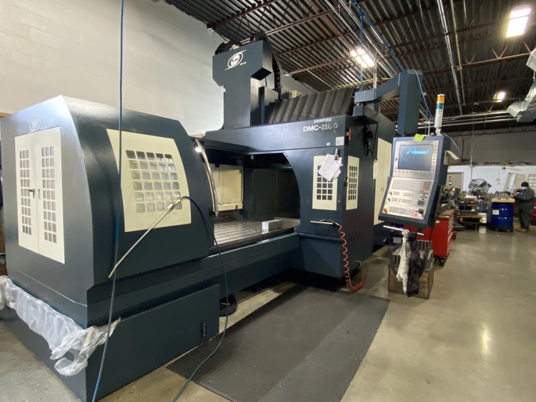 The Hi-Net DMC-2100HN is a high-performance double column machining center designed for high speed machining of complex 3-D shapes. The Hi-Net concept was developed to meet the needs of high speed, net shape machining in mold, die, and aerospace machining. Simply put, the machine is built to machine shapes in a variety of materials at high feedrates and with a high degree of accuracy.